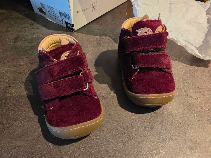 Chaussures de la marque Na! en taille 18. Dessus en cuir et matière type daim. Doublure et semelle intérieur en cuir. Couleur : bordeaux. Porter quelque fois mais encore en bon état.