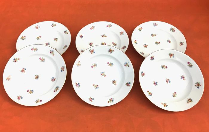 6 assiettes anciennes creuses  P.N France  Porcelaine brassées de fleurs - photo numéro 1