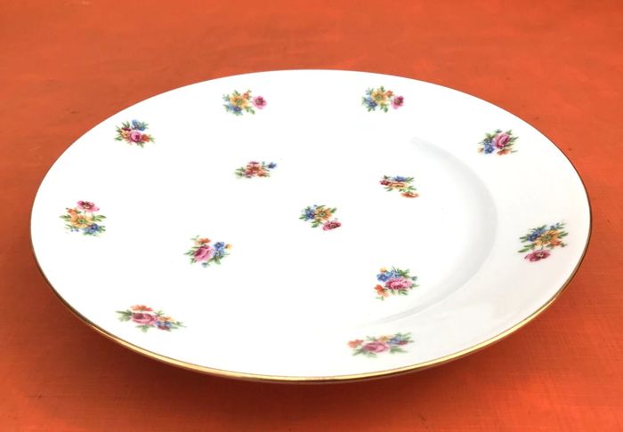 6 assiettes anciennes creuses P.N France Porcelaine blanche liseré or à décor brassées de fleurs Diamètre : 235mm Hauteur : 35mm Poids total : 2kg460 Lot 1