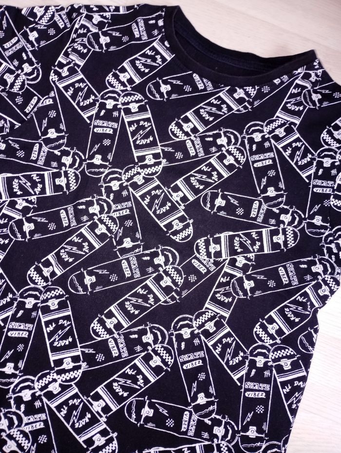 Tee-shirt noir motif skateboard Marque : Primark T. 7-8 ans Très bon état général