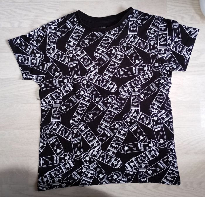 Tee-shirt noir motif skateboard Primark T. 7-8 ans