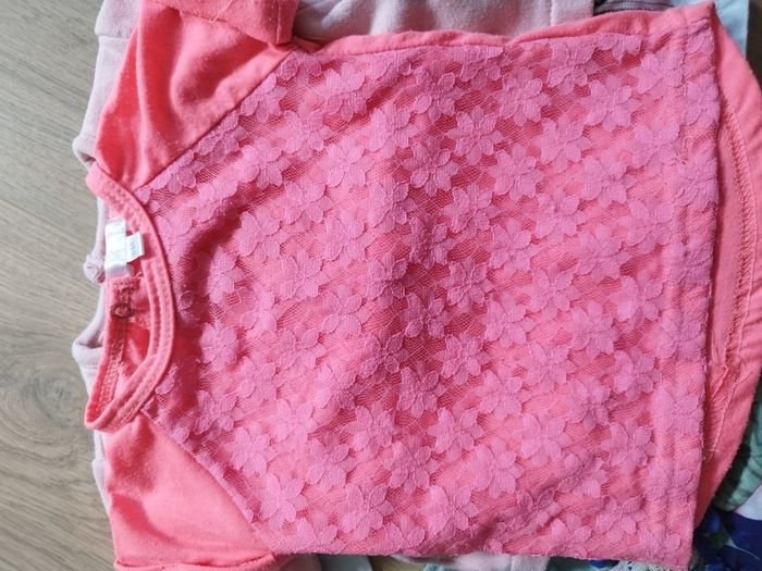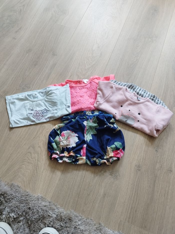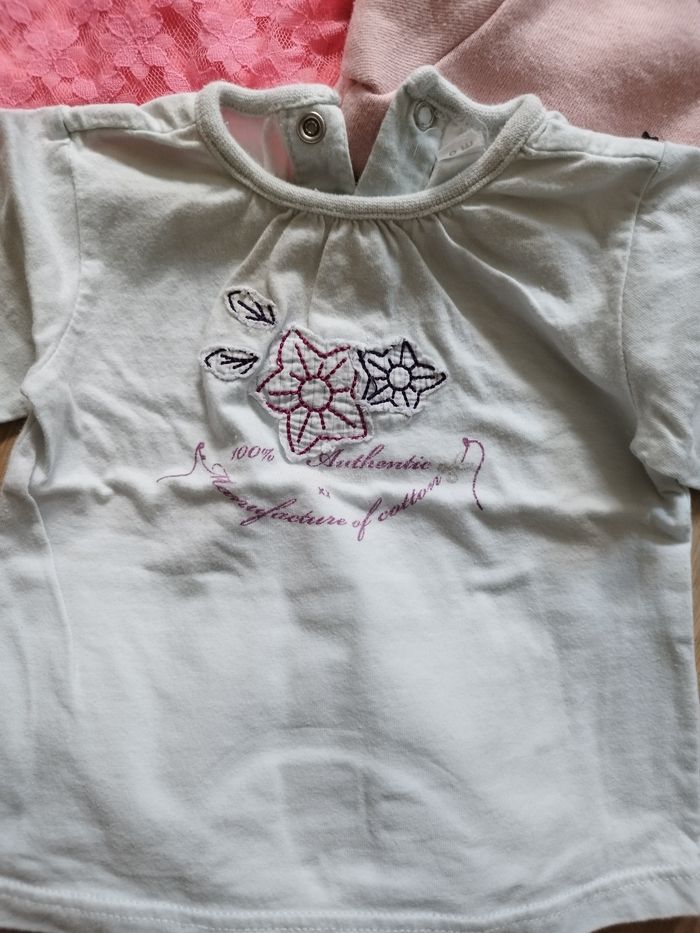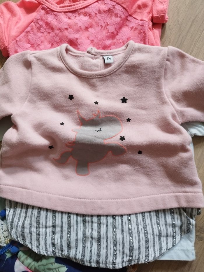 Lot de 1 tee-shirt manches courtes (kimadi), 1 tee-shirt manches longues, 1 pull 1 combi Le blanc est très légèrement tâché 6 mois