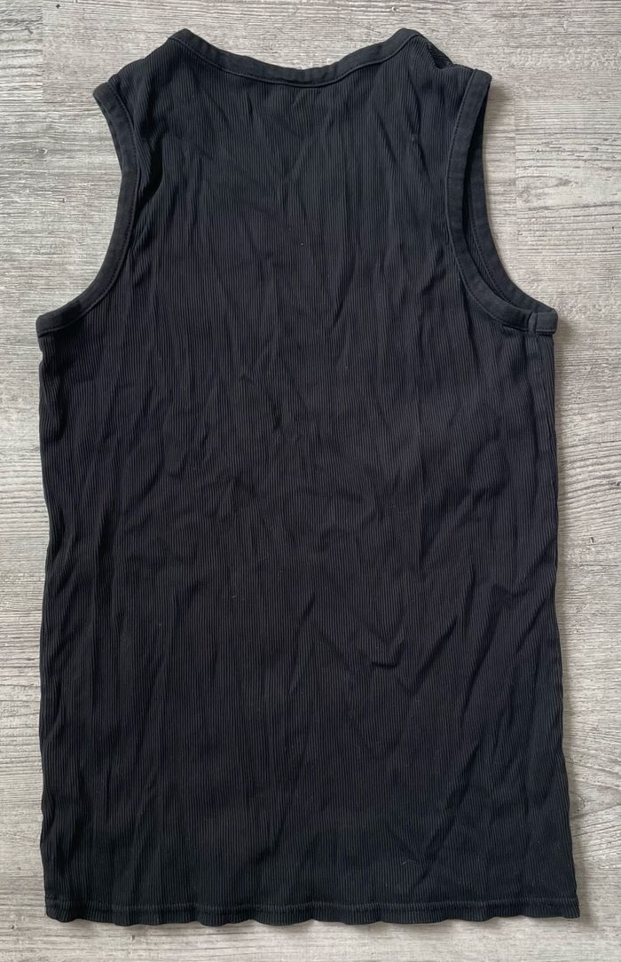 Débardeur de la marque Kiabi Taille M (étiquette effacée) Dimensions largeur à la poitrine 41cm, longueur 65cm Petites traces d’utilisation Occasion, bon état