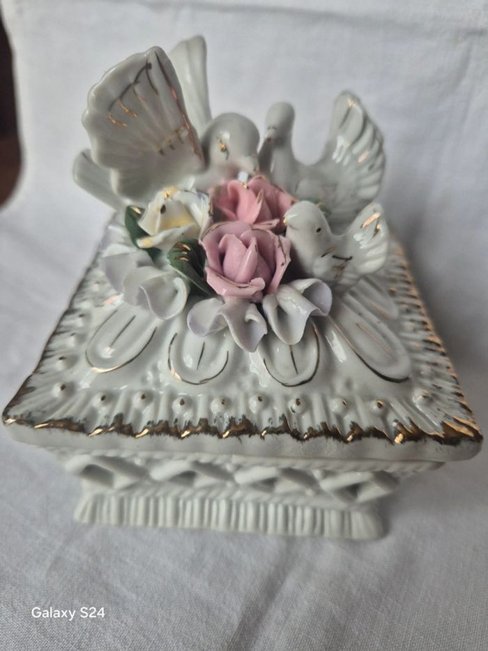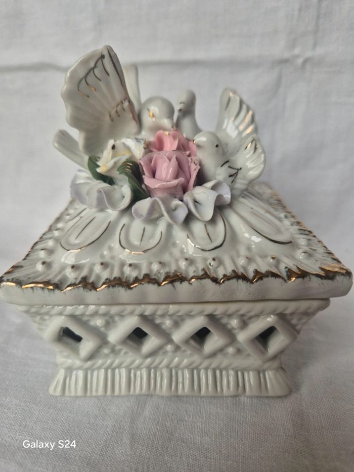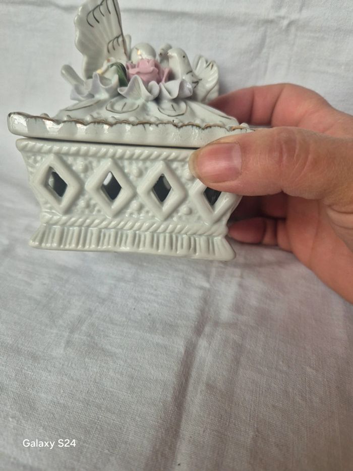 ⬇️mes autres annonces d'article de maison, décoration👉 #cg89déco ➡️mes autres annonces de bijoux et accessoires👉 #cg89bijoux une boite en porcelaine. Le couvercle est tout simplement magnifique avec les cygnes et des roses. le fond est ajouré. Idéal pour comme boite à bijoux ou pour mettre du pot pourri ... très bon état - il n'est pas ébréché. #boiteabijoux #porcelaine #cygne #rose #decoration #cadeau #potpourri #fleurseche