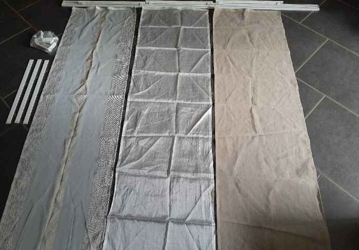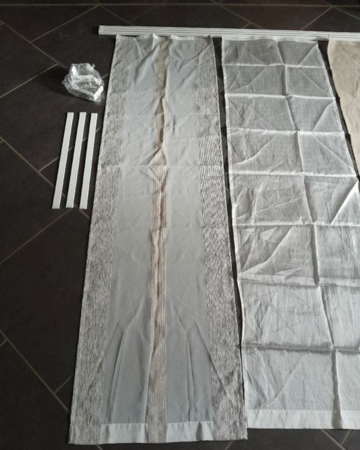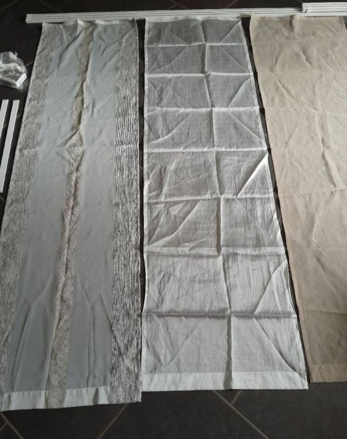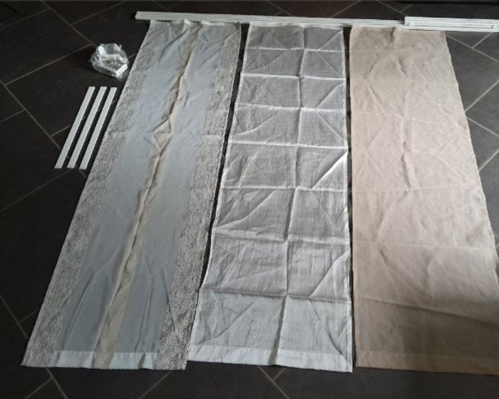 Kit complet panneaux japonais voilages. Pour baie vitré de Hauteur 1m75 largeur 1m50 3 panneaux voilages de 50cm x 1m75 Tringle rail 1m93 50euros