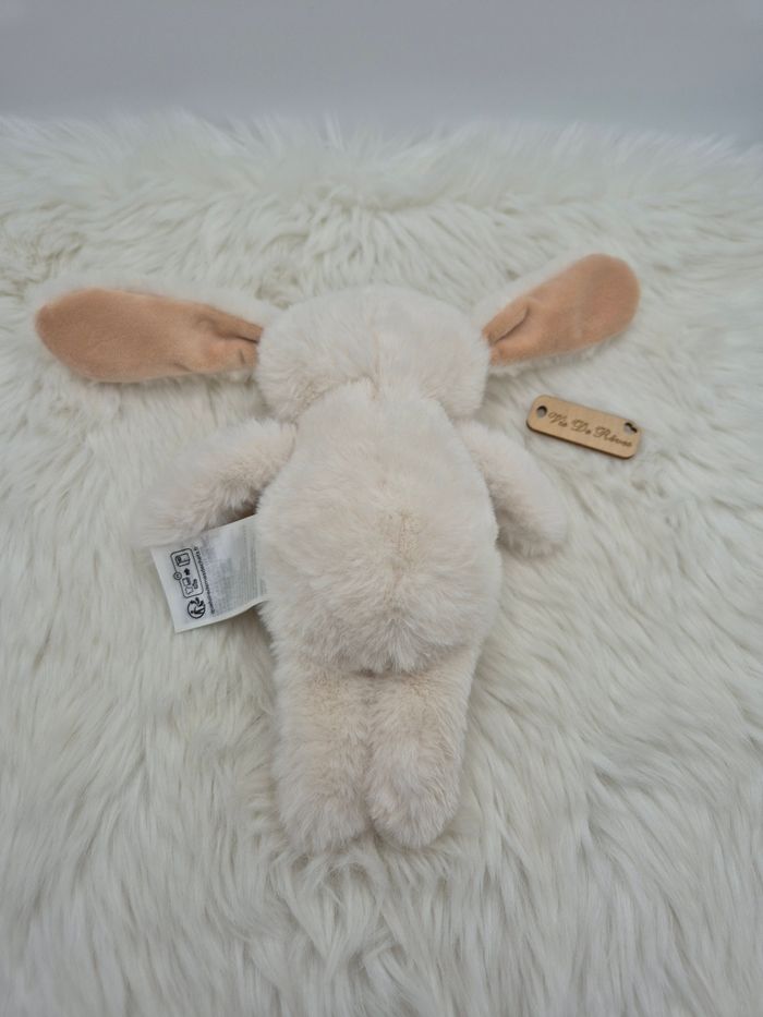 Doudou peluche lapin Fourrure écru noeud Vieux rose/beige - photo numéro 3