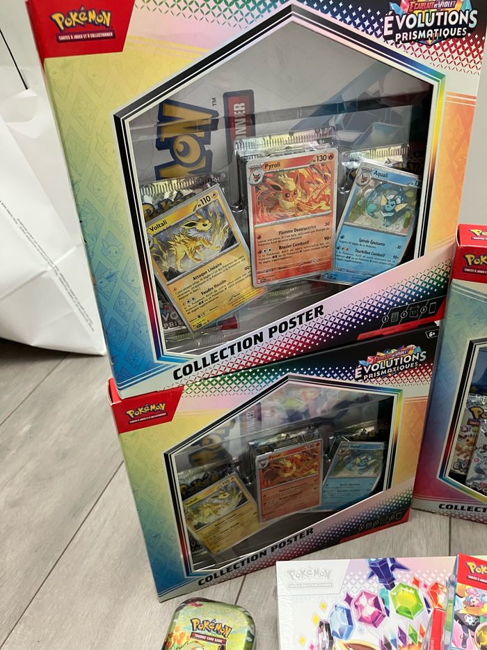 Je vends sur Limoges, en lot ou séparé. RMP de préférence mais livraison ok. 📦 - 3 ETB ev8.5 : 100€/u (elles ont toute un trou dans le scellage) - 4 posters ev8.5 : 30€/u - 1 classeur v8.5 : 60€ - 9 mini tins ev8.5 : 25€/u - 2 bundles ev8.5 : 70€/u - 1 coffret surprise ev8.5 : 50€ - 1 bundle ev9 : 50€ - 1 semi display ev9 : 140€ TOTAL : 1085€ - Je peux faire le lot entier à 1000€. Tout est neuf et scellé ✅ n’hésitez pas à me demander davantage de photos des produits qui vous intéresse. Évolution prismatic pokemon cartes jeu collection nouveau tendance deck coffrets cadeau noel enft anniversaire ado booster boosters 8.5 08.5 pikachu evoli nymphali noctali grivali pyroli aquali voltali mentali zoroark coffret dresseur d’élite display demi case carton neuf scellé pas ouvert parfait éta