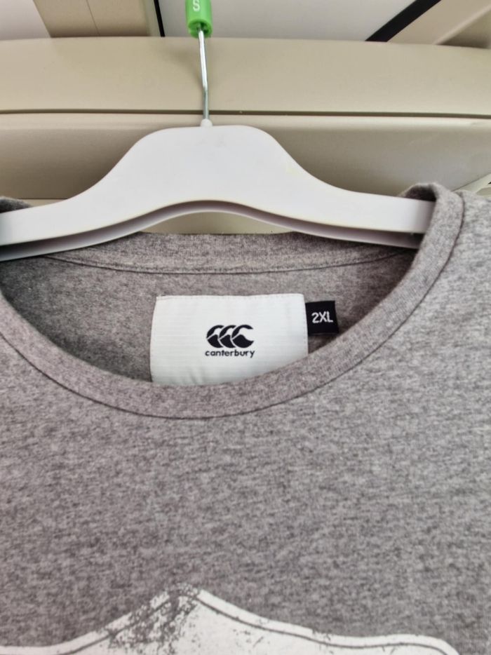Marque bien connue des fans de rugby ! 🏉 Comme neuf car porté 1 seule fois. Taille 2XL. Couleur gri chiné, avec impression en blanc sur le devant. Acheté 35€. D'autres vêtements homme (Jules, Canterbury, Celio, Kiabi ...), femme, bébé garçon dans mon dressing ainsi que jouets, puériculture, accessoires, sacs,...