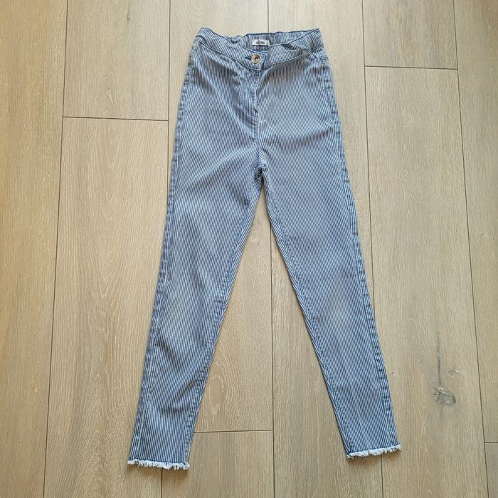Jeans slim/skinny bleu et blanc à rayures. En matière extensible Fille 10 ans. Marque Gémo En excellent état Il y a plein d autres articles dans cette taille dans mon dressing  🤗 #lunaclara60fille10ans