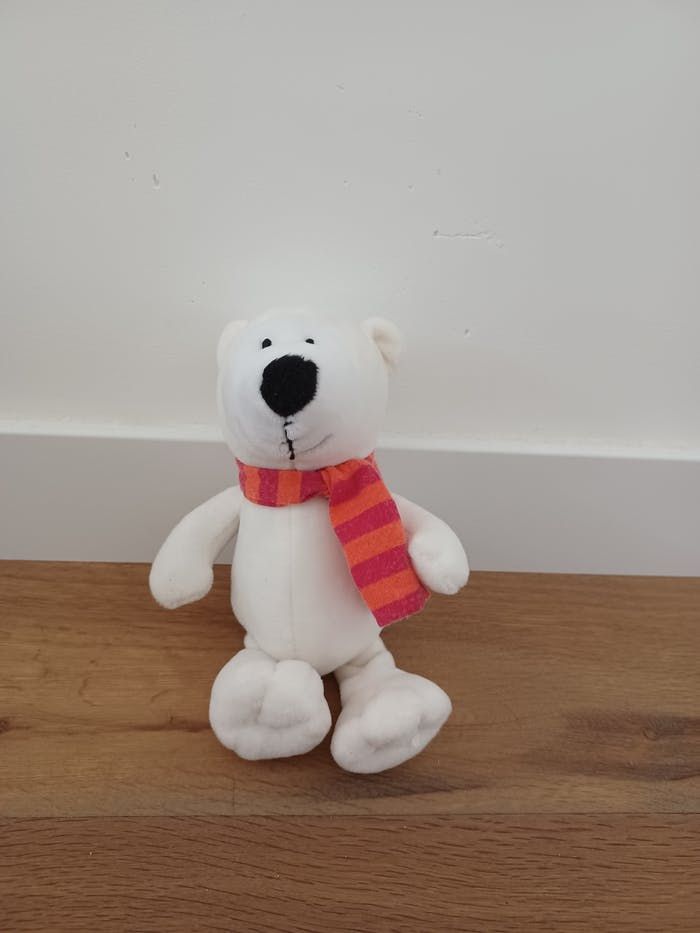 Peluche ours blanc avec écharpe