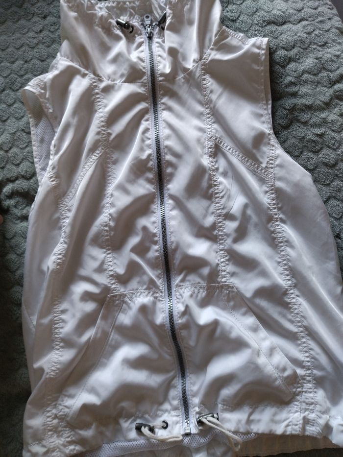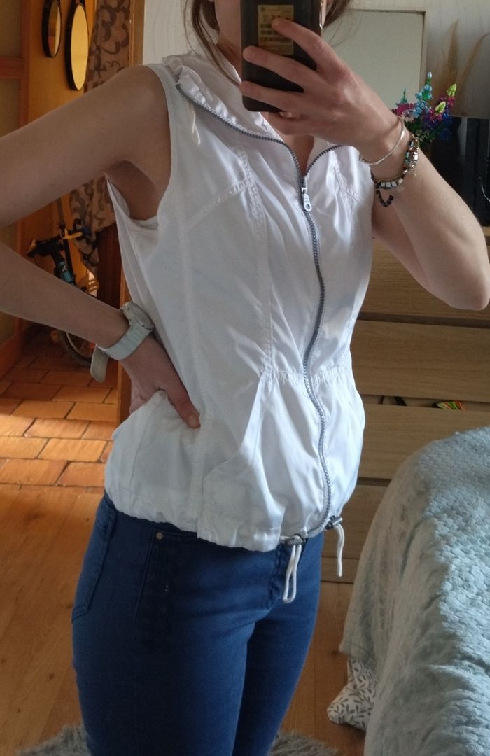 Veste sans manche blanche Cordons de serrage et fermeture éclair Taille 38/40 sur étiquettes mais correspond a du 36/38 En bon état général