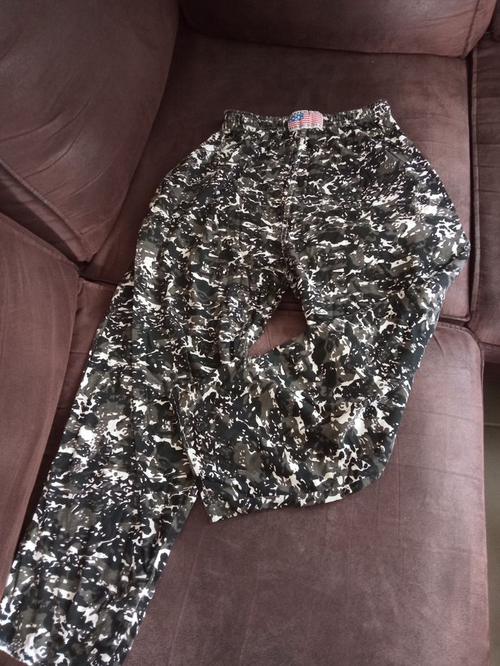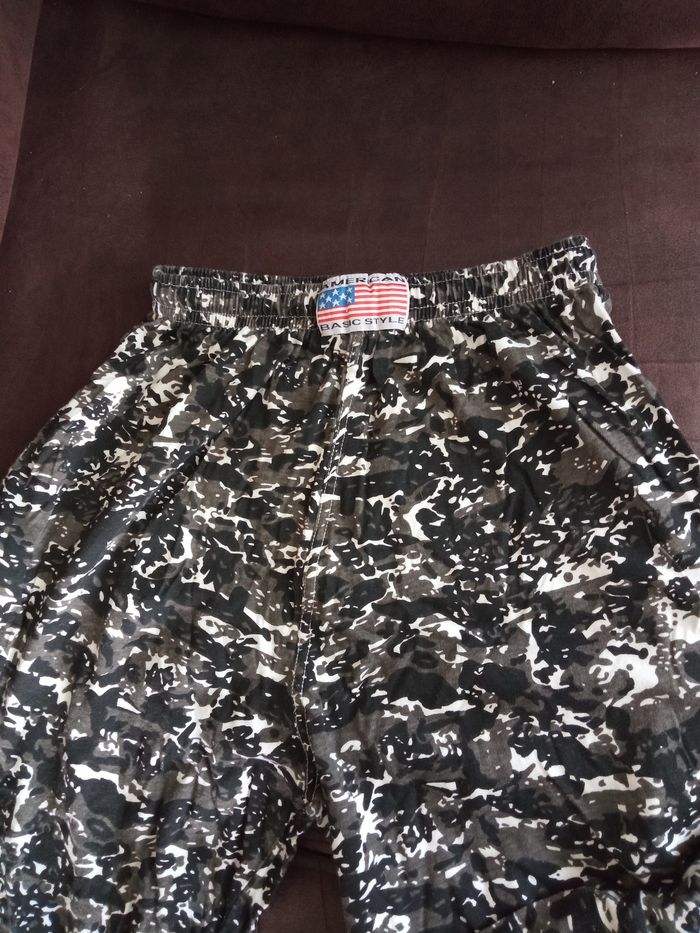 Pantalon/Pantacourt décontracté Taille L "American Basic Style" Couleur: Multicolore (style camouflage) Taille entièrement élastiquée avec cordon de serrage, s'enfile 1 poche de chaque côté Lavable en machine à 30° Dimensions: Longueur 88,5cm - Entrejambes 59cm - Taille non étirée 32,5cm - Hanches 63,5cm Matière: 100% Coton PANTALON/PANTACOURT en bon état, peu porté (vendu comme sur les photos)