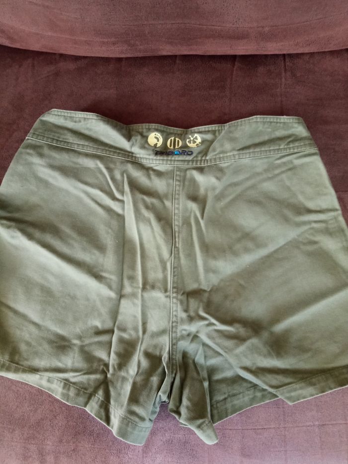 Short Court Taille 42 "Tribord" de chez Decathlon Couleur: Kaki uni Poches de chaque côté devant Se ferme par scratch devant Dimensions: Longueur 35cm - Taille non étirée 37,5cm Matière: 100% Coton Short en parfait état, peu porté (vendu comme sur les photos)