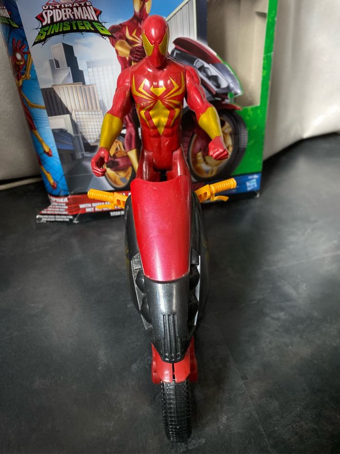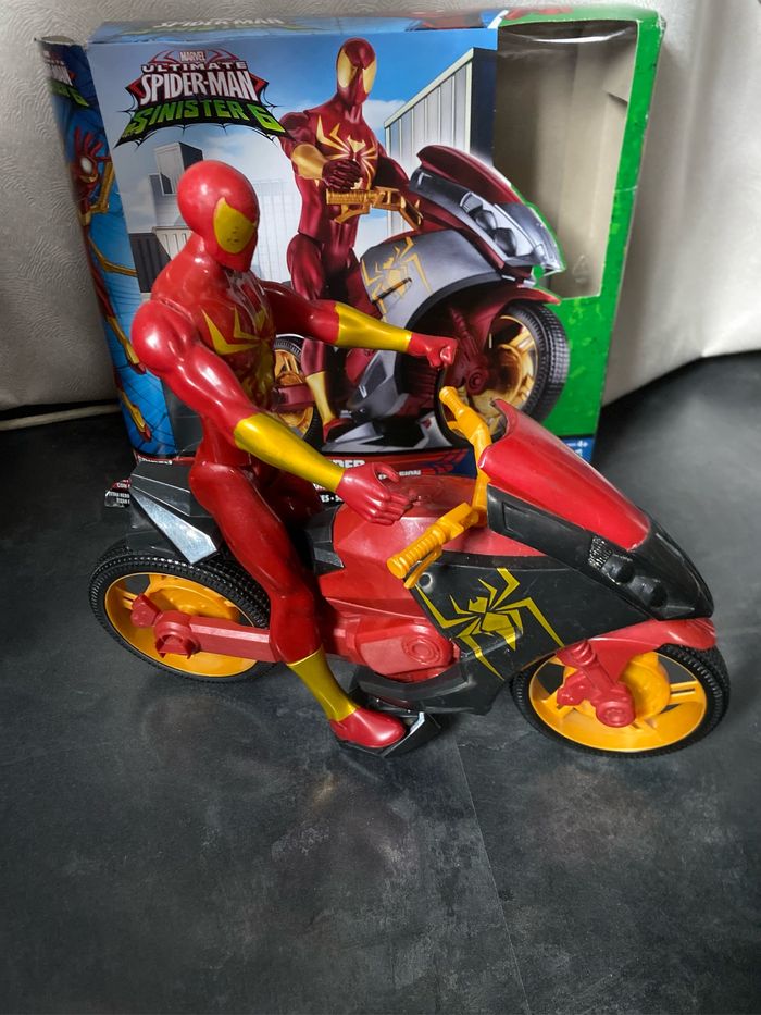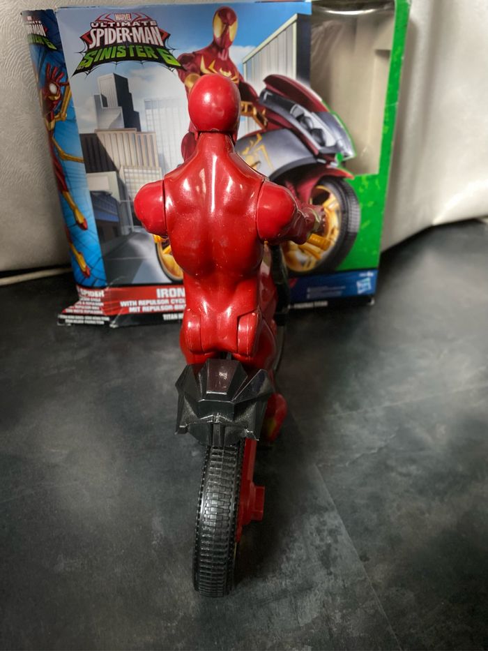 Dans sa boite Iron spider man avec moto à répulsion Marvel
