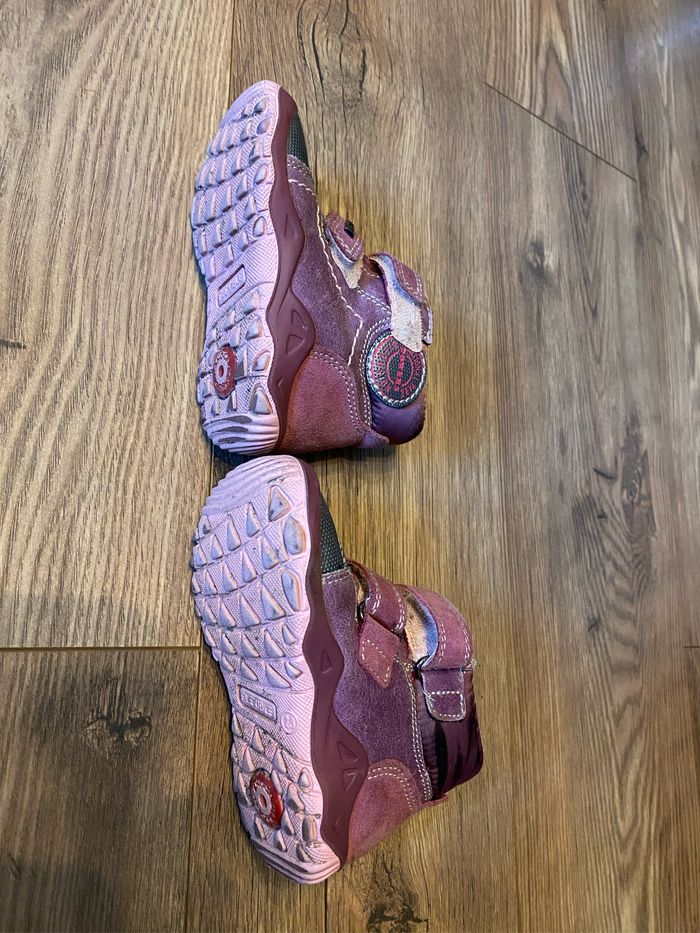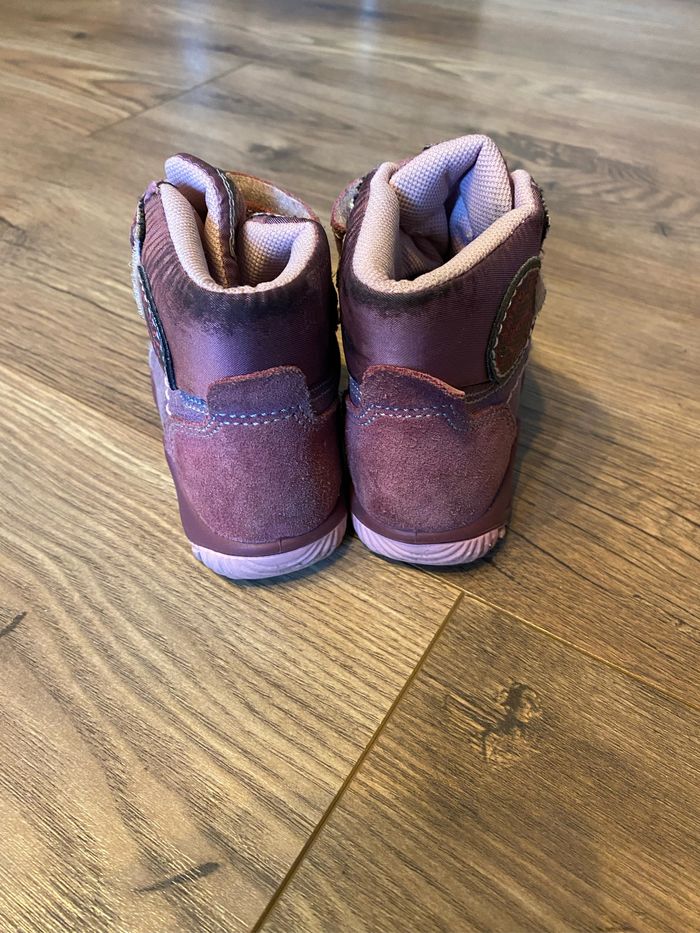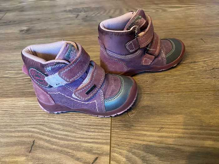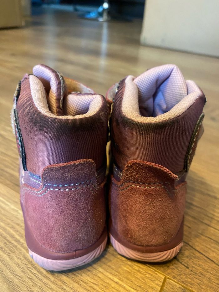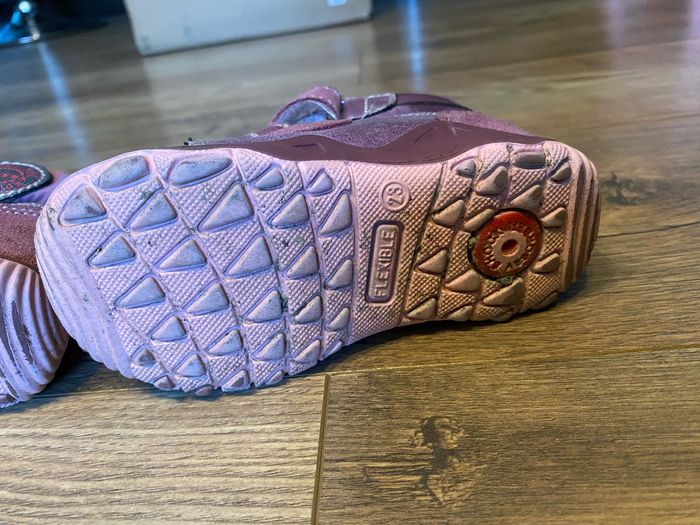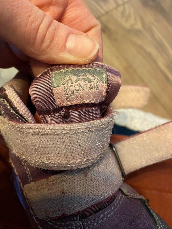 Chaussures hiver violet T23 fille Marque : MOUNTAIN DPT chaussures montantes à scratch. Chaussures utilisées plusieurs fois, semelle flexible, les chaussures ne sont pas trouées ou abîmées mais elles portent quelques marques d’usures comme une décoloration du tissus sur certains endroits de la chaussure (voir photos)