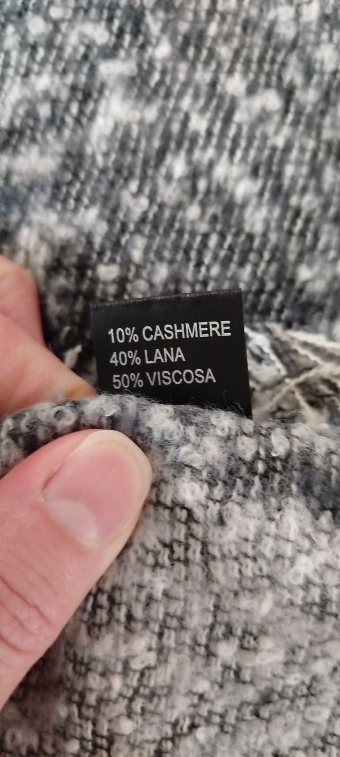 Écharpe dégradée de gris et de blanc, neuve. Dimensions de l'écharpe : 242cm x 71,50cm Pour les dimensions sur photos, le tissu est plié en 2 pour la longueur car impossible de prendre la photo en entier des 242cm donc : 121cm fois 2 = 242cm. Matières (voir photo 3) : viscose, laine et cachemire