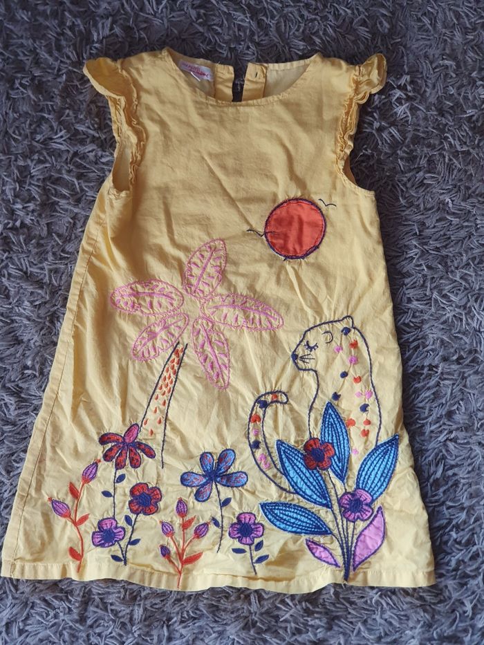 Magnifique robe jaune soleil Avec surpiqure motif jungle Exczllent etat