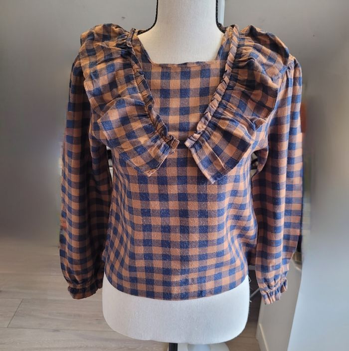 Chemise marron et bleu marine. Fermeture dans le dos par bouton Fille 11/12 ans ( 152 cms). Marque Zara En excellent état Il y a plein d autres articles dans cette taille dans mon dressing  🤗 #lunaclara60fille11ans #lunaclara60fille12ans