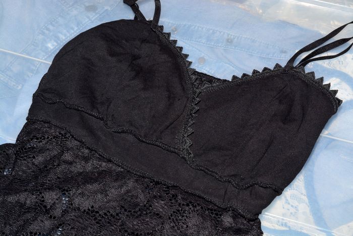 joli débardeur noir ajusté noir uni en dentelle semi-transparent doublé à la poitrine taille S - photo numéro 4