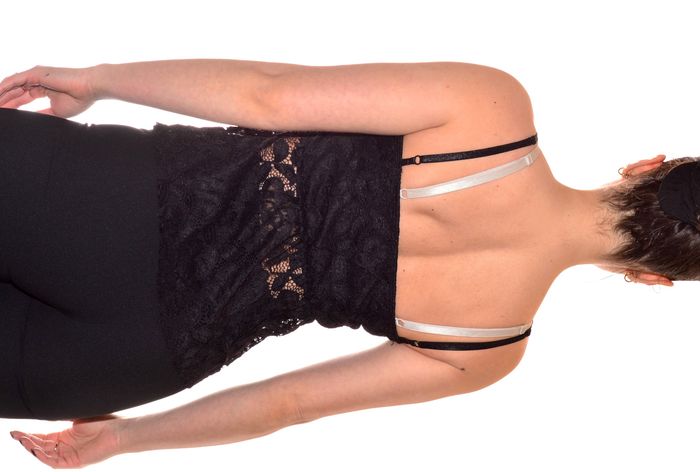 joli débardeur noir ajusté noir uni en dentelle semi-transparent doublé à la poitrine taille S - photo numéro 8