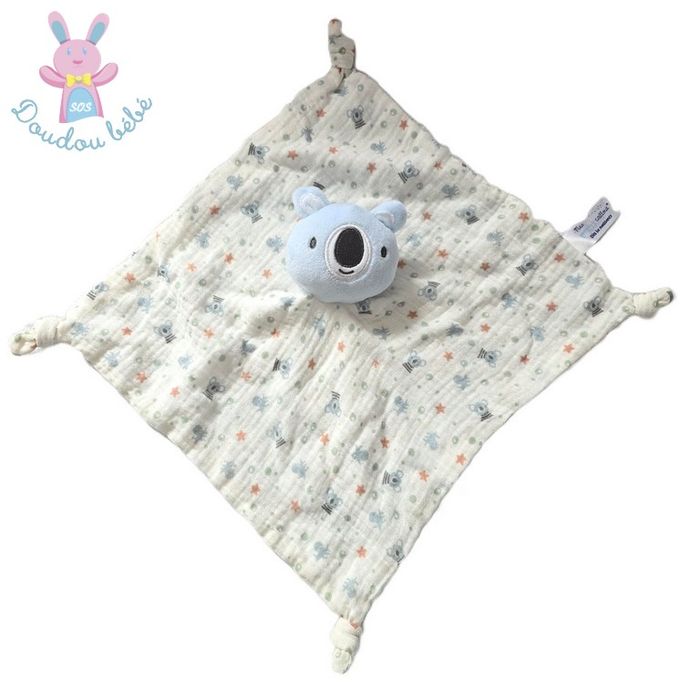 BOUTIQUE PRO SOS DOUDOU BEBE (+ de 3000 doudous en stock) ---------------------------------- Doudou plat KOALA marque MES PETITS CAILLOUX Tête velours bleu avec carré lange tissu blanc avec petits motifs (réf D-1832) Occasion très bon état #sosdoudoukoala
