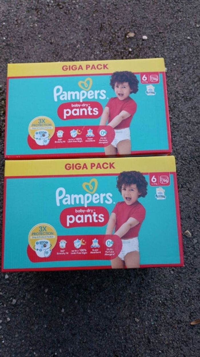 2 cartons couches Pampers pants culottes T6 taille 6 giga pack jamais ouvert