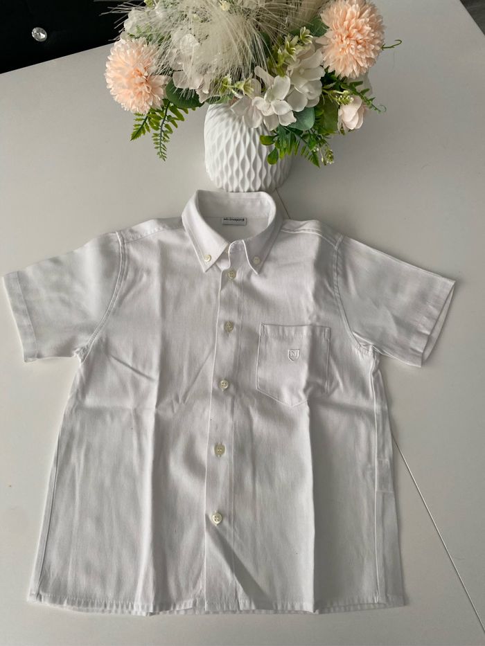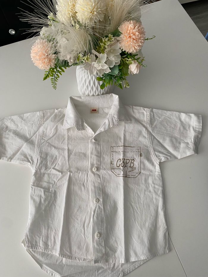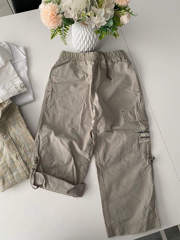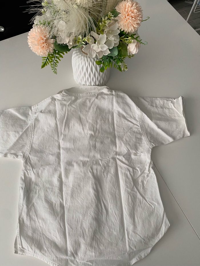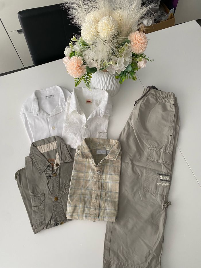 Ensemble 4/5 ans ( plus 5 ans car les 2 chemises 4 ans taillent grand ) neuf : tous est neuf sauf une chemise qui a été portée une ou deux fois . Le pantalon est réglable au niveau de la longueur et à la taille par un cordon. 25€ le lot