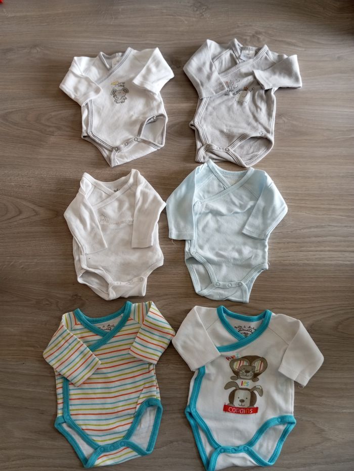 Lot de 6 bodies manches longues, taille 1 mois.