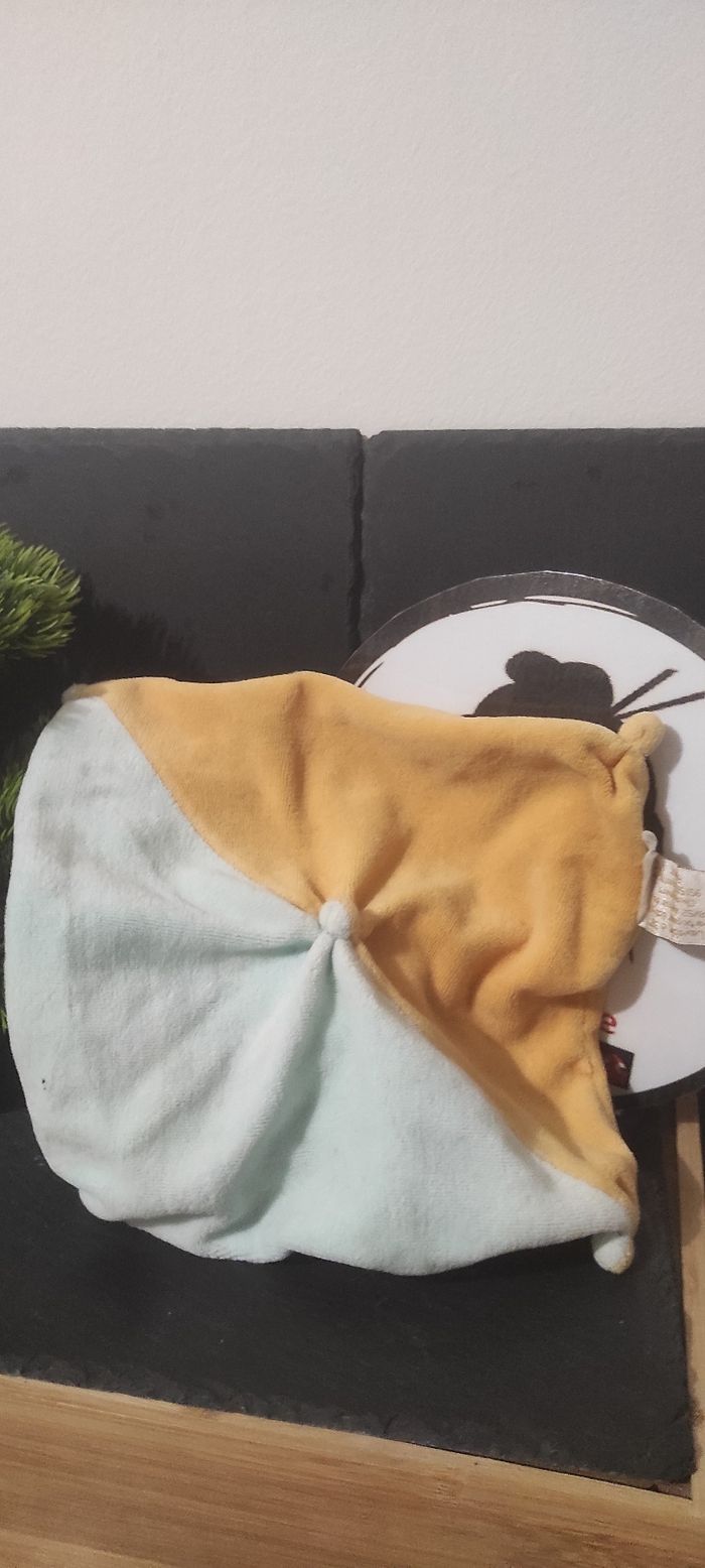 Doudou plat ours orange bleu jaune baby nat ancien bonnet carré colerette Noeud - photo numéro 2