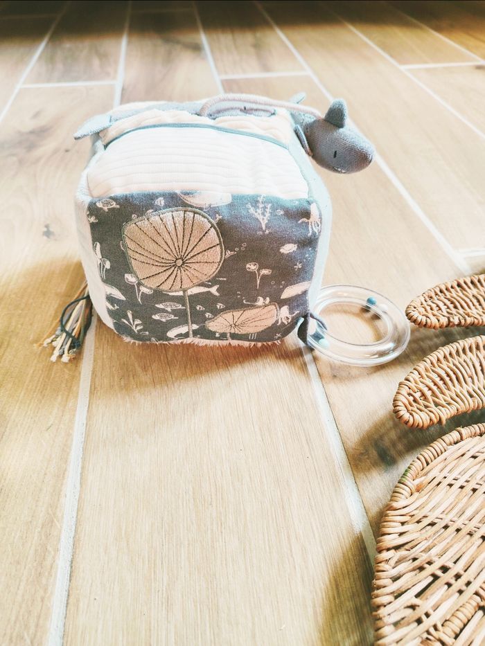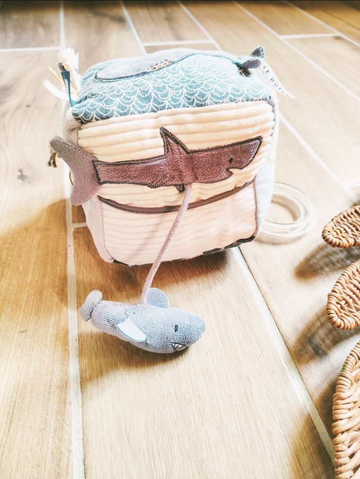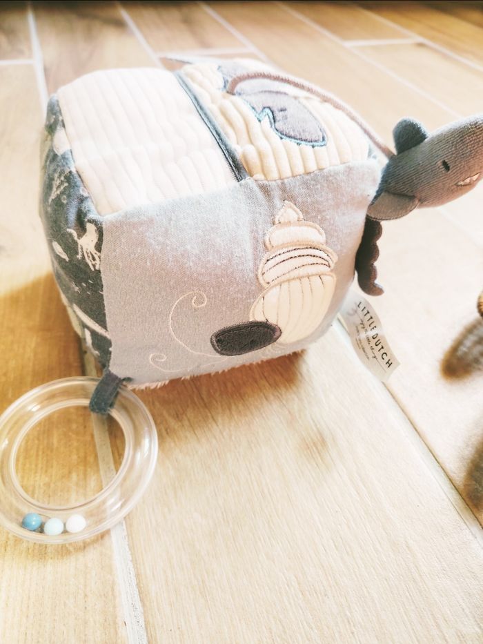 🐳Jouet sensoriel-Cube d'éveil multi activités en tissu Les animaux marins- marque Little dutch