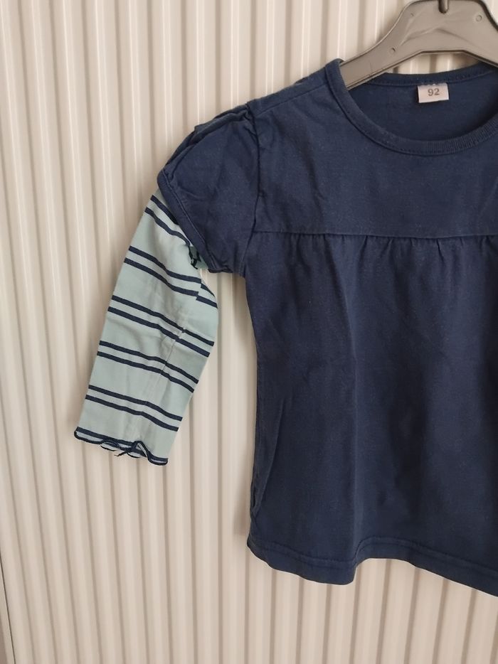T shirt manches longues bleu fille 3 ans - photo numéro 2