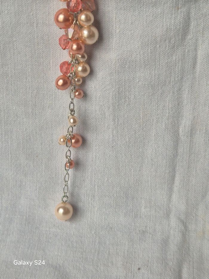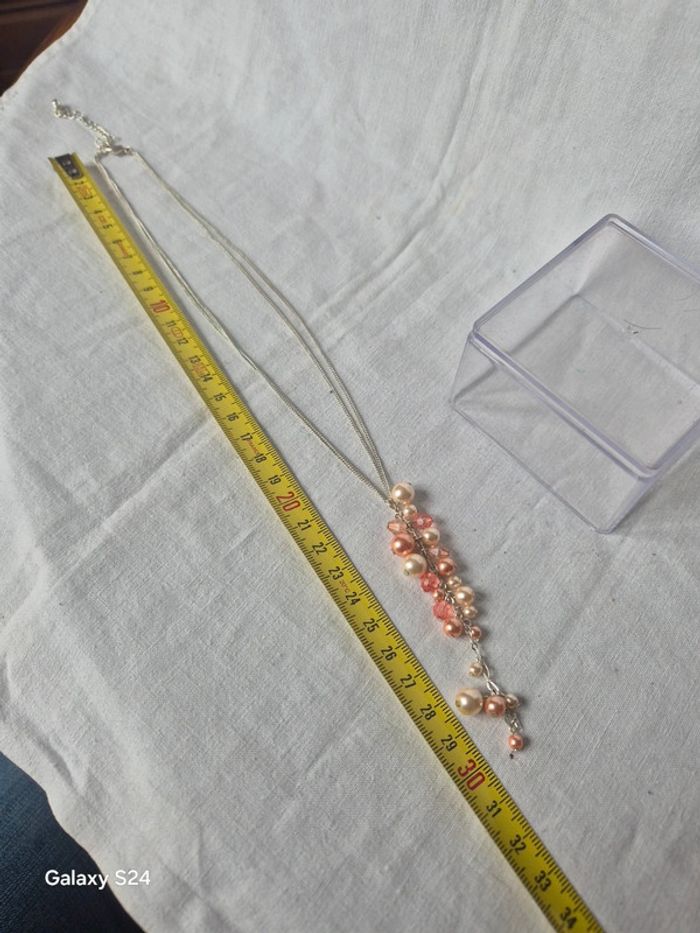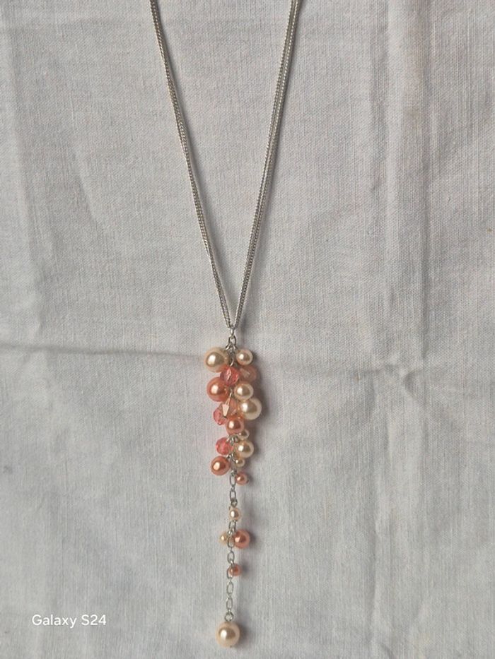 ➡️mes autres annonces de bijoux et accessoires👉 #cg89bijoux un collier avec double chaine et pendentif avec des perles beiges et rosées. très bon état #collier #bijoux #cadeau #argenté #perle #chaine