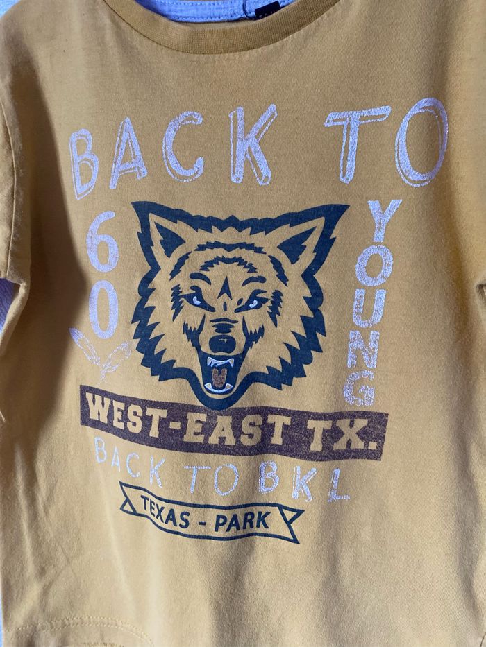 T-shirt jaune loup texas Park 6 ans Pas de trou, pas de tâche