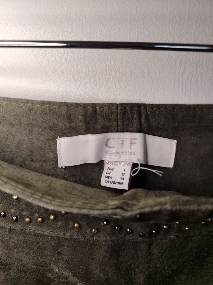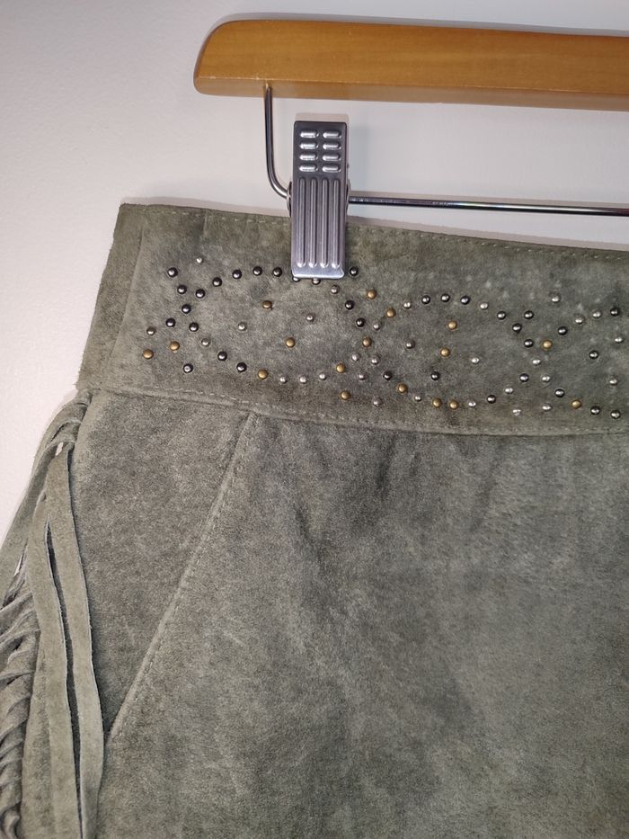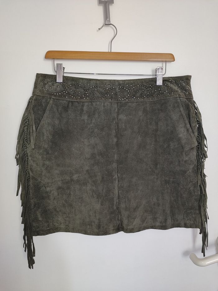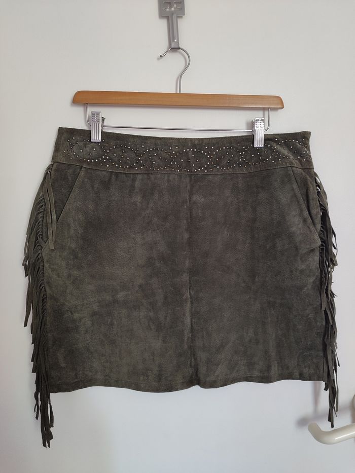 Jupe courte à frange de couleur kaki. Taille L : 40 Marque CTF En parfait état Belle pièce 🧡