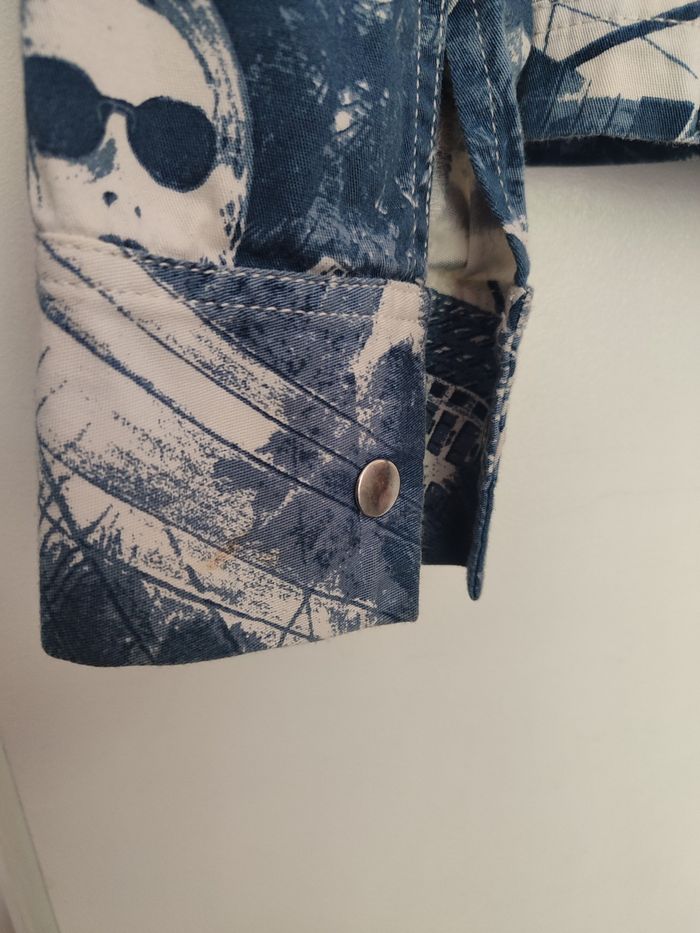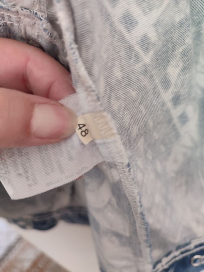 ⚠️ Lire annonce⚠️ Veste achetée de seconde main en ligne, mais malheureusement je ne rentre pas dedans. Il y a quelques tâches qui ne partent pas d'où sont petit prix. Étiquette noté taille 48 : mais impossible ! Veste légère pas de jean, légèrement extensible Aisselle a aisselle 52cm