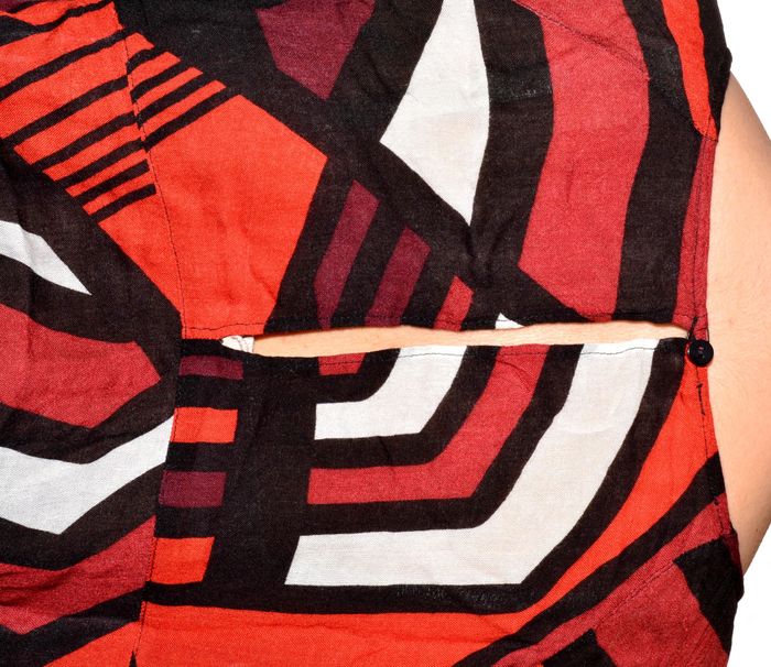 blouse manches longues fluide taille XL à motif tons orangés noir blanc col rond - photo numéro 8