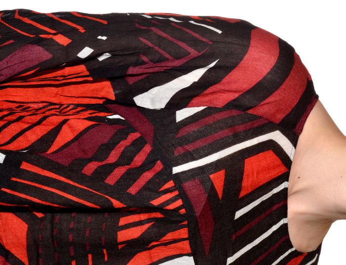 blouse manches longues fluide taille XL à motif tons orangés noir blanc col rond - photo numéro 7