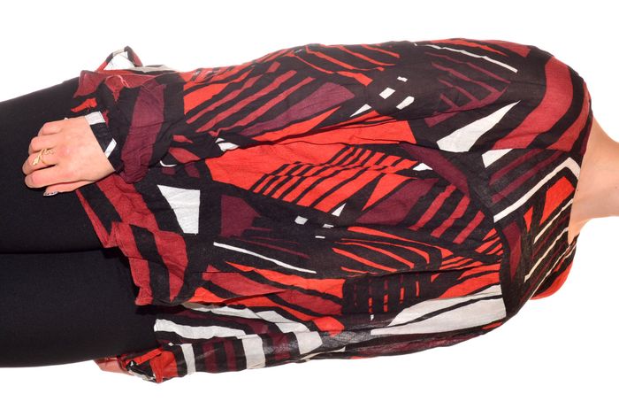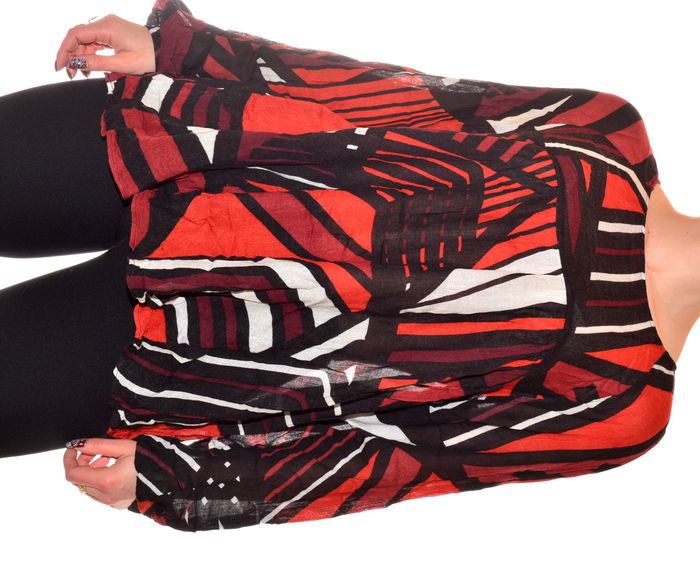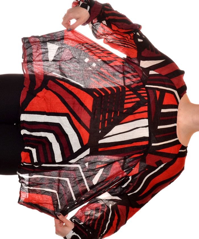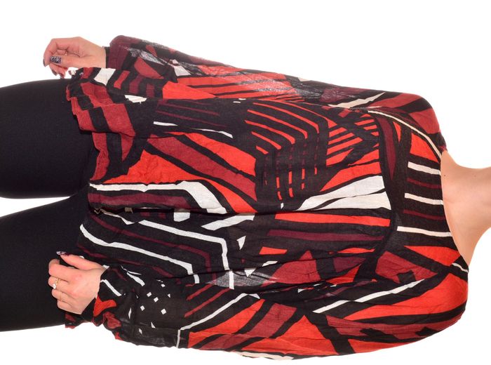 blouse manches longues fluide taille XL à motif tons orangés noir blanc col rond - photo numéro 3