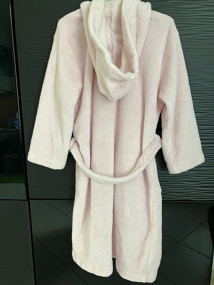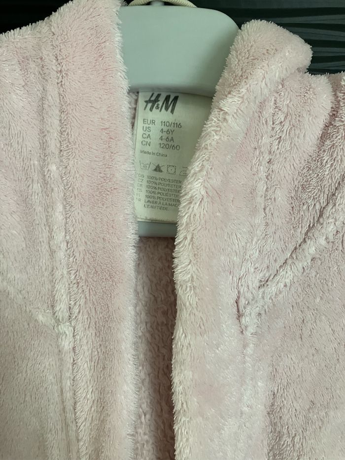 Peignoir rose pale avec une capuche, deux poches et une ceinture, 100% polyester, de marque H&M, taille 4-6 ans (110-116 cm) Très bon état, toujours doux
