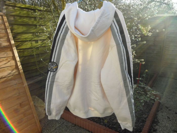 Très beau Sweat à capuche ce porte large Très bon état aucun accro Taille L Fermeture éclair sur toute la longueur N'hésitez pas a me contactez si plus de renseignement Sera envoyer dans un carton solide profitez pour faire d'autre achat.