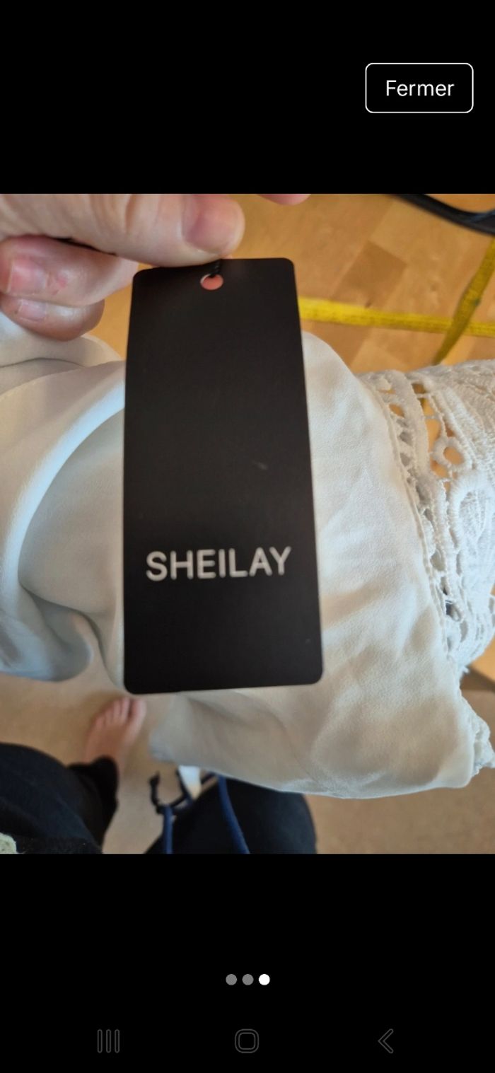 Blouse Sheilay neuve avec étiquette. Motif sur les manches. Taille m. Légèrement transparente