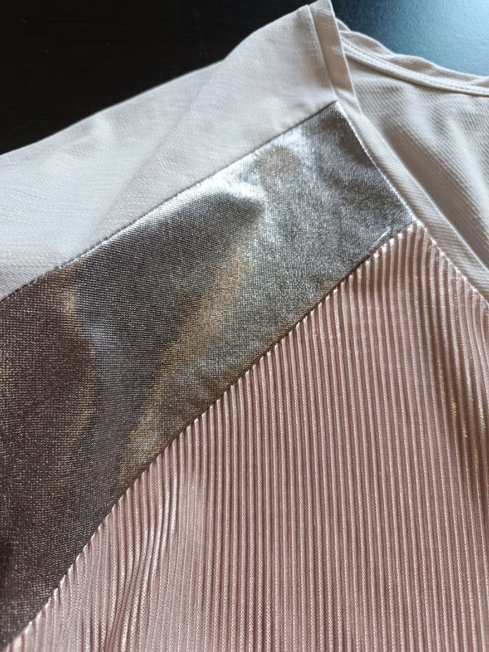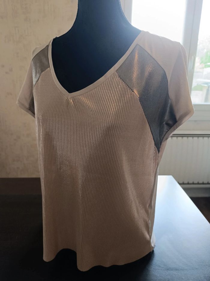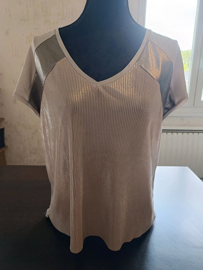 Tee shirt MORGAN Beige, argenté & beige rosé irisé Manches courtes TAILLE M TRES BON ETAT Allez voir mes autres ventes!