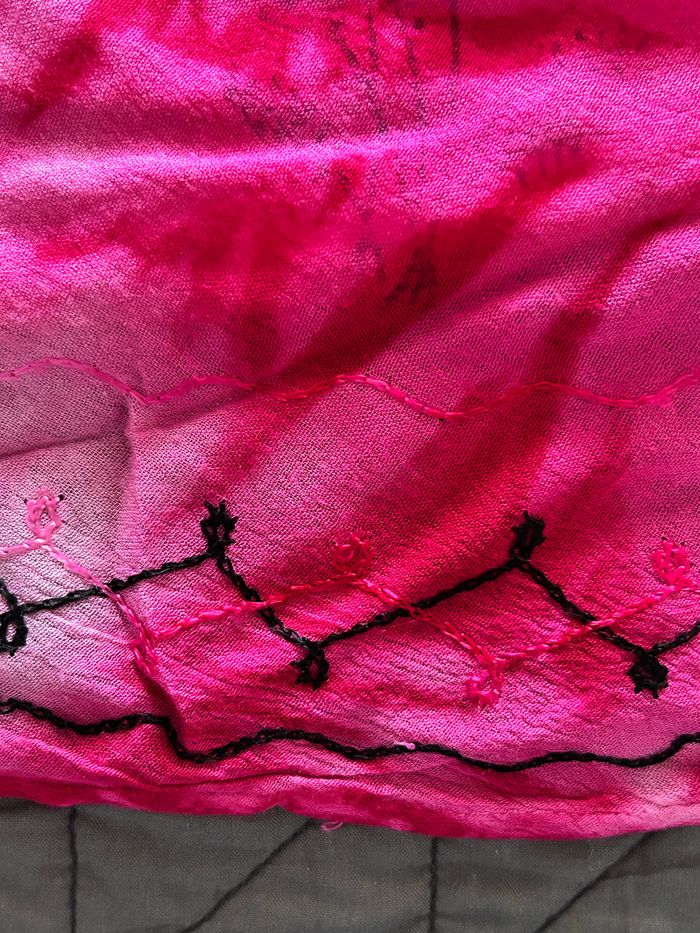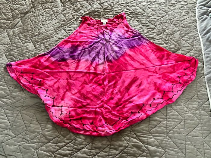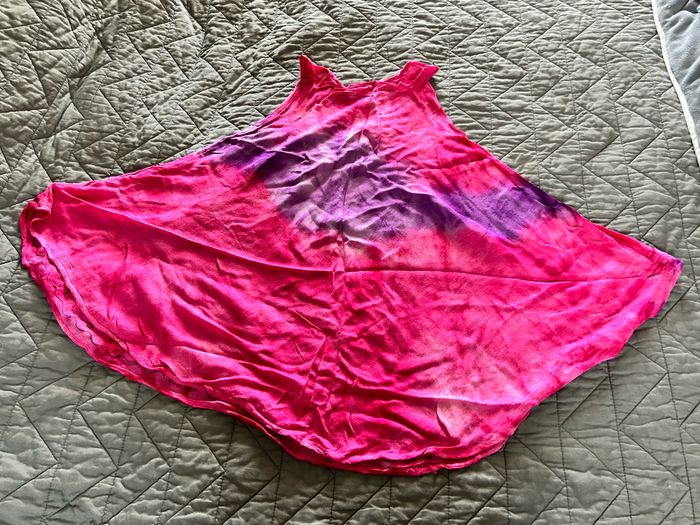 Robe de plage sans manches très amples, couleur rose fuchsia et violet avec petites broderies devant. Taille 10 ans. Style robe indienne. Très bon état.