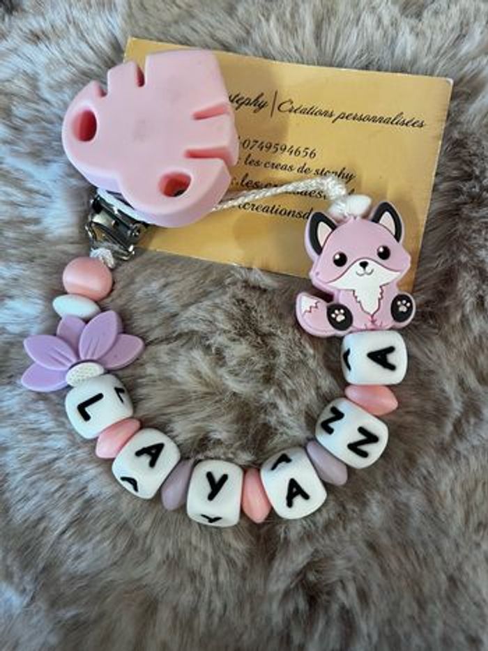 Pour passer commande il suffit de valider le paiement sur l’annonce du modèle désiré et de m’envoyez le prénom de l’enfant par message que je puisse réaliser votre commande A partir de 2 articles vous bénéficiez de 5% de réduction 🥰 Réalisation dans la journée et envoie dès le lendemain Attention l’adaptateur tétine mam et en supplément à 1€ Une petite photo du modèle terminé et toujours envoyez que vous puissiez vérifier ☺️