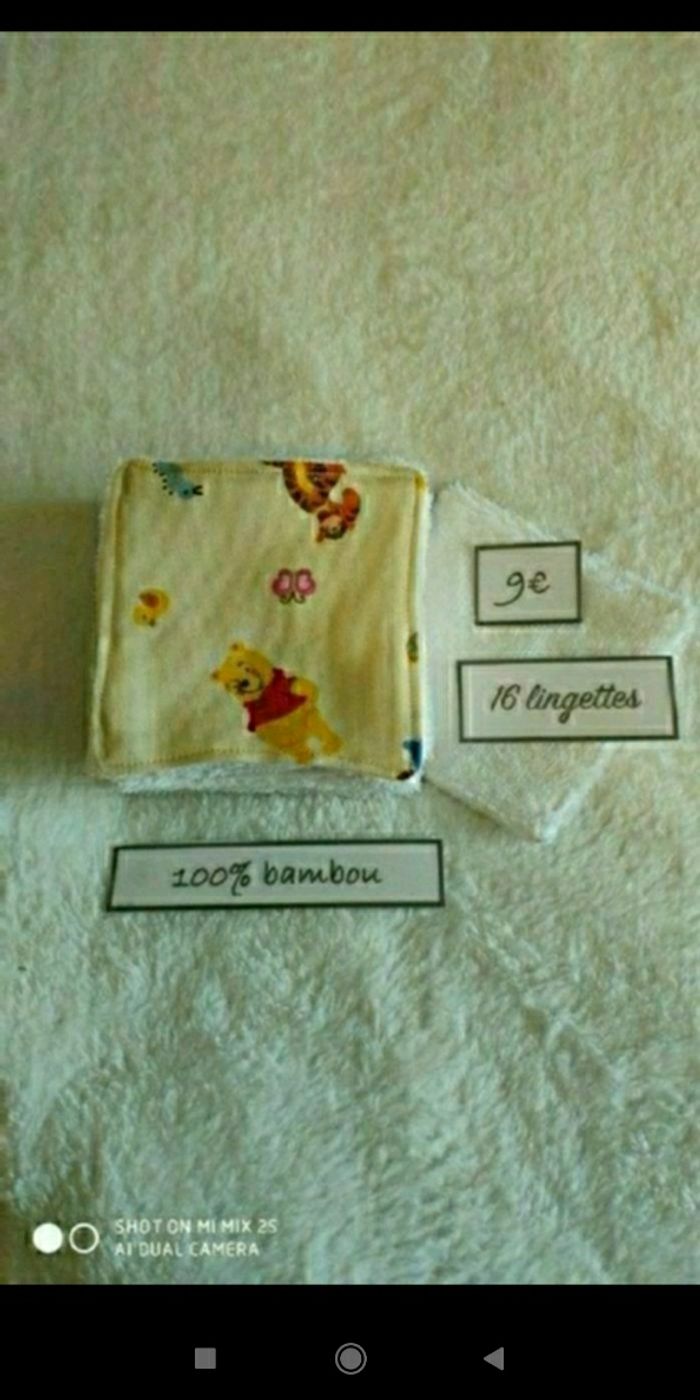 Tissu eko-tex français et éponge bambou blanc ,10 X10 cm fabriqué en Bretagne par moi même créatrice 😄