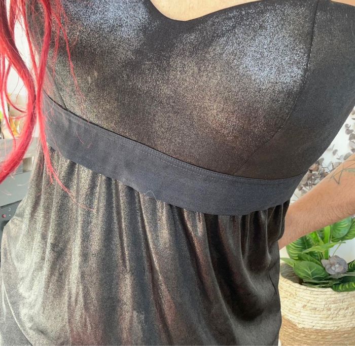 Robe noire style satinée, parfaite pour une belle occasion 🌸Taille unique 🌸Effet satinée 🌸Bustier 🌸 Très bonne conditions ➡️Réductions sur les les lots #robesatinée #robenoire #robebustier #vintage #2000
