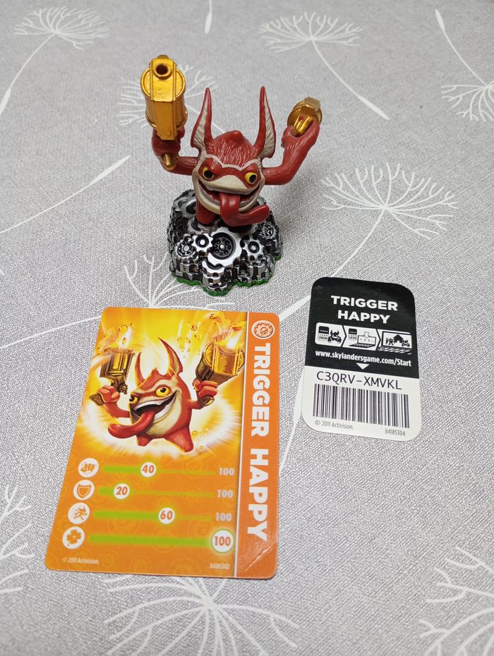 Figurine Trigger Happy de Skylanders. Avec carte et code. Très bon état.