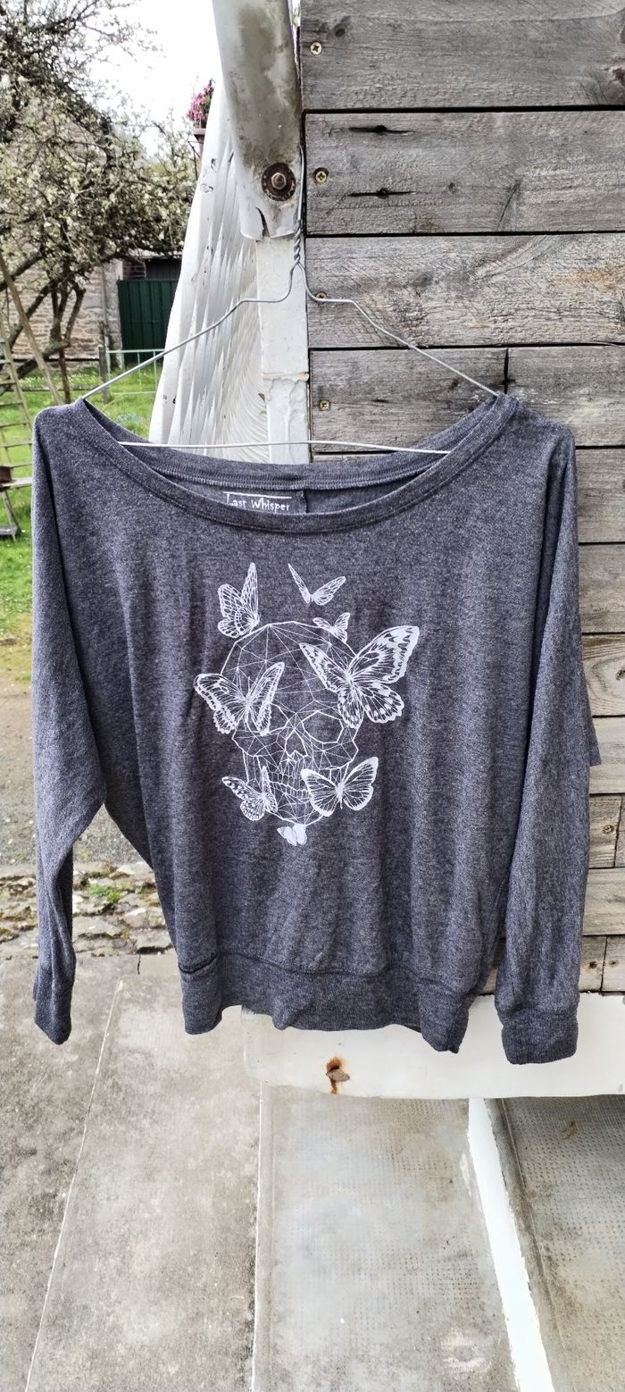 T Shirt gris à manches longues pour femme. Marque Last Whisper. Taille M. Comme neuf. Que mondial relais ou Relais Colis.
