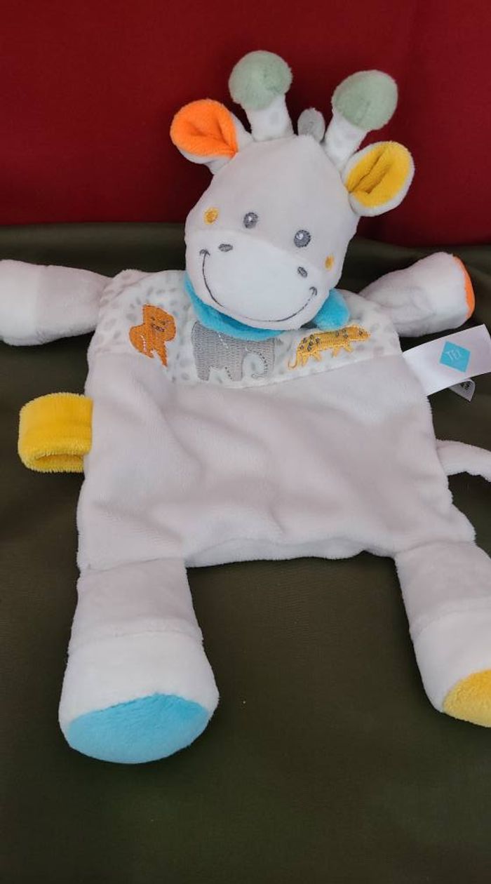Girafe TEX CARREFOUR doudou plat gris lion éléphant - photo numéro 1