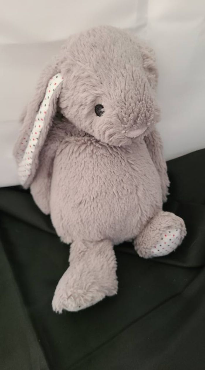 Doudou Peluche Damart Lapin Gris Pois Rouge Noir - photo numéro 4